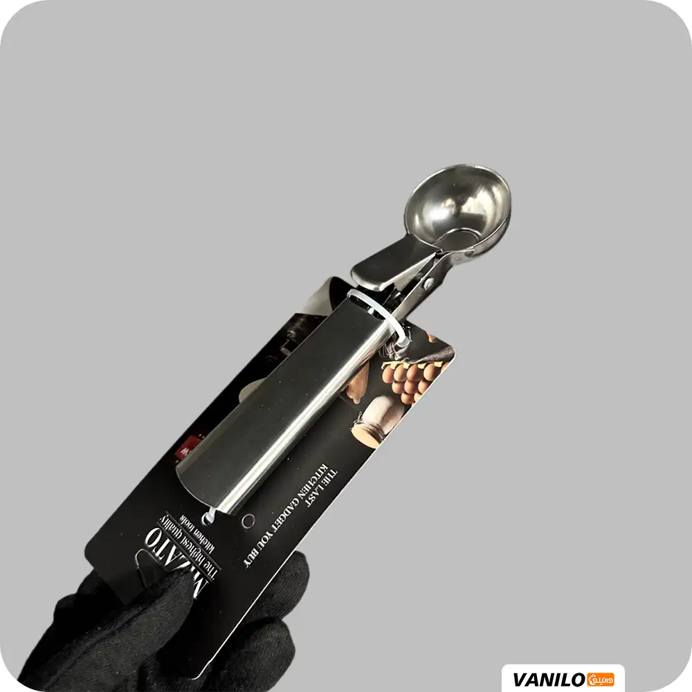 اسکوپ انگشتی استیل کوچک یک ابزار تخصصی و کاربردی در آشپزخانه و قنادی است که برای تقسیمبندی دقیق و یکسان مواد استفاده میشود. این ابزار از استیل ضدزنگ ساخته شده و دارای یک مکانیزم خلاصکن (ضامن) است که با فشار انگشت یا دست، مواد را به راحتی از داخل محفظه کروی جدا کرده و بیرون میاندازد. قطر اسکوپ ۴.۵ سانت میباشد