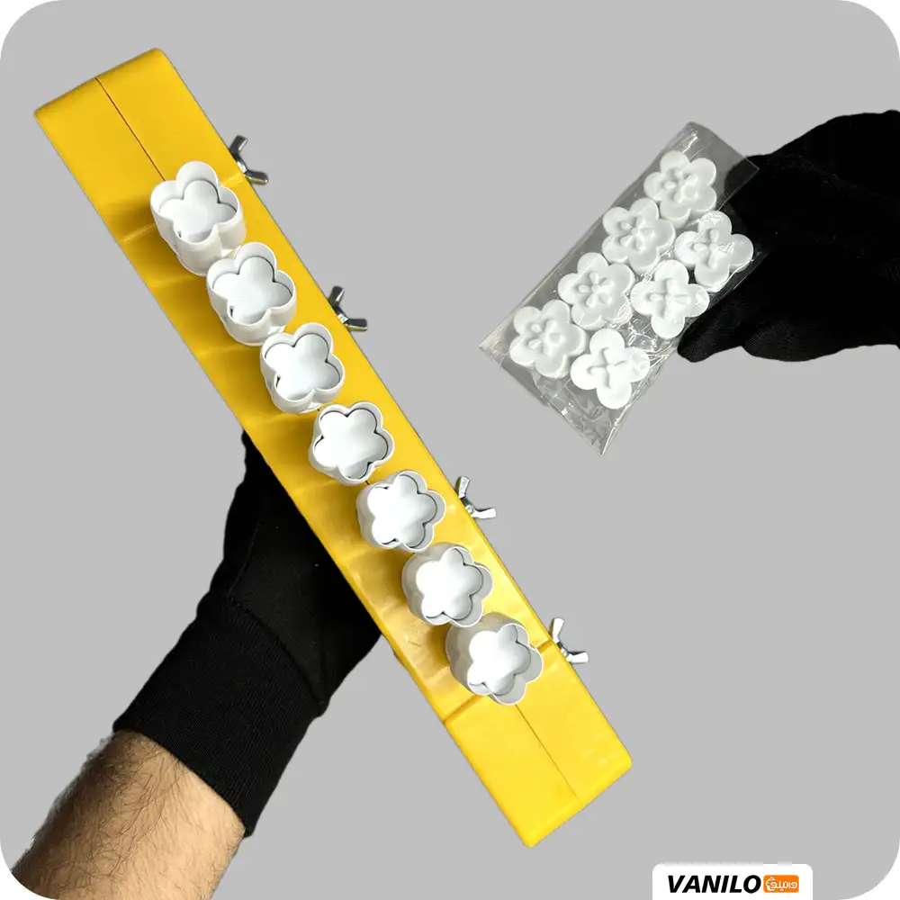 ستگاه سری زن نخودچی گل ۷ حفره یک ابزار تخصصی و کارآمد در لوازم قنادی است که به منظور افزایش چشمگیر سرعت و دقت در تولید انبوه شیرینیهای سنتی طراحی شده است. این دستگاه از یک صفحه کاتر فشاری بزرگتر تشکیل شده که به طور همزمان، خمیر را با استفاده از هفت عدد کاتر مجزا، به شکلهای یکنواخت و زیبا با طرح گل برش میدهد و مهر میزند و این امکان را فراهم میآورد تا شیرینیهای خانگی یا کارگاهی، ظاهری بسیار منظم و حرفهای پیدا کنند.
