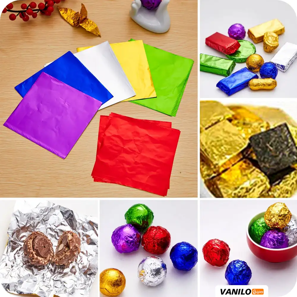 بستهبندی شیک و حرفهای شکلاتهای خانگی و کارگاهی با زرورق شکلات ۱۰۰ عددی در سایز ۱۰×۱۰ سانتیمتر! این زرورقها با طراحی زیبا و کیفیت عالی، بهترین انتخاب برای دسرهای لوکس، هدایای خاص و فروش حرفهای هستند.