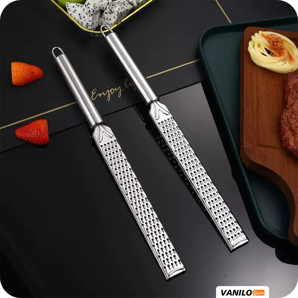 در دنیای حرفهای کیک و دسر، زستر استیل ابزاری است که تفاوت میان یک کیک معمولی و یک شاهکار معطر را رقم میزند. این رنده باریک و کشیده با تیغههای ریز و فوقبرندهای که به روش فوتواچ (Photo-etching) ساخته شدهاند، طراحی شده تا فقط و فقط لایه رنگی و معطر پوست مرکبات (Zest) را جدا کند، بدون آنکه به لایه سفید و تلخ زیرین برسد. نتیجه کار، پودری لطیف و سرشار از اسانسهای روغنی است که عطر لیمو، پرتقال یا حتی شکلات و جوز هندی را به شکلی باورنکردنی در بافت کیک آزاد میکند.