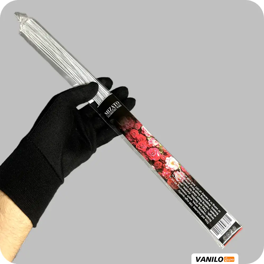 سیم گلسازی 40 سانت سایز 22 سفید 100 عدد برندmizato