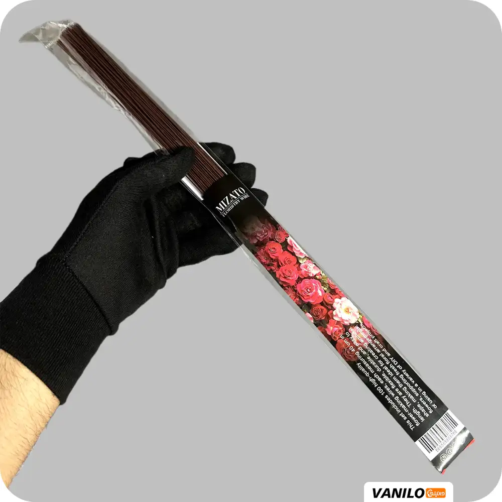 سیم گلسازی 40 سانت سایز 24 قهوه 100 عدد برندmizato
