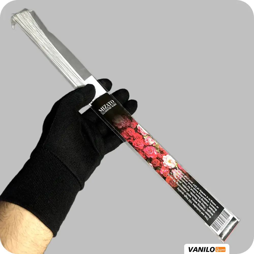 سیم گلسازی 40 سانت سایز 26 سفید 100 عدد برندmizato
