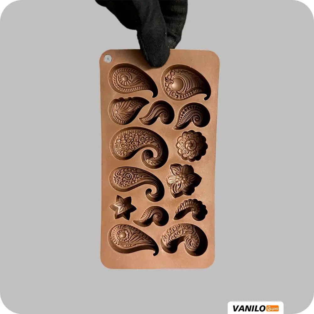 قالب سیلیکونی شکلات کالکشن ترمه ابزاری پرکاربرد در قنادی و شیرینیپزی است که برای ساخت انواع شکلات، حلوای بوتیکی، ژله و دسرهای کوچک به کار میرود؛ این قالب از جنس سیلیکون نسوز و انعطافپذیر ساخته شده و دارای حفرههایی با طرحهای زیبای سنتی ایرانی مانند ترمه و بته جقه است که به محصولات نهایی، ظاهری مجلل، شیک و متفاوت میبخشد و نیاز به تزئینات اضافه را کاهش میدهد.