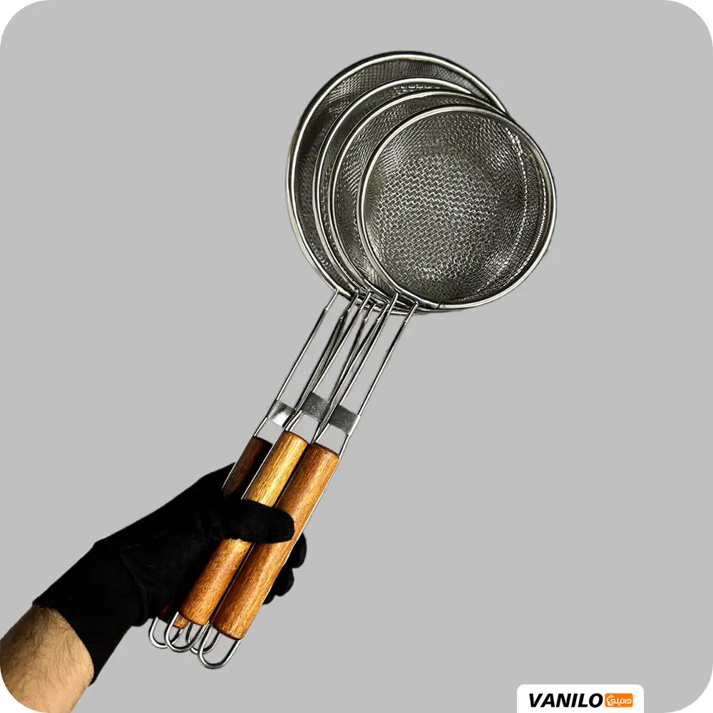 صافی دسته چوبی یک مجموعه کاربردی از چهار صافی با اندازههای مختلف است که برای مصارف گوناگون در آشپزخانه استفاده میشود. این صافیها دارای بدنهای از استیل ضدزنگ و یک دسته چوبی مقاوم هستند که در دست گرفتن آنها را راحت میکند.