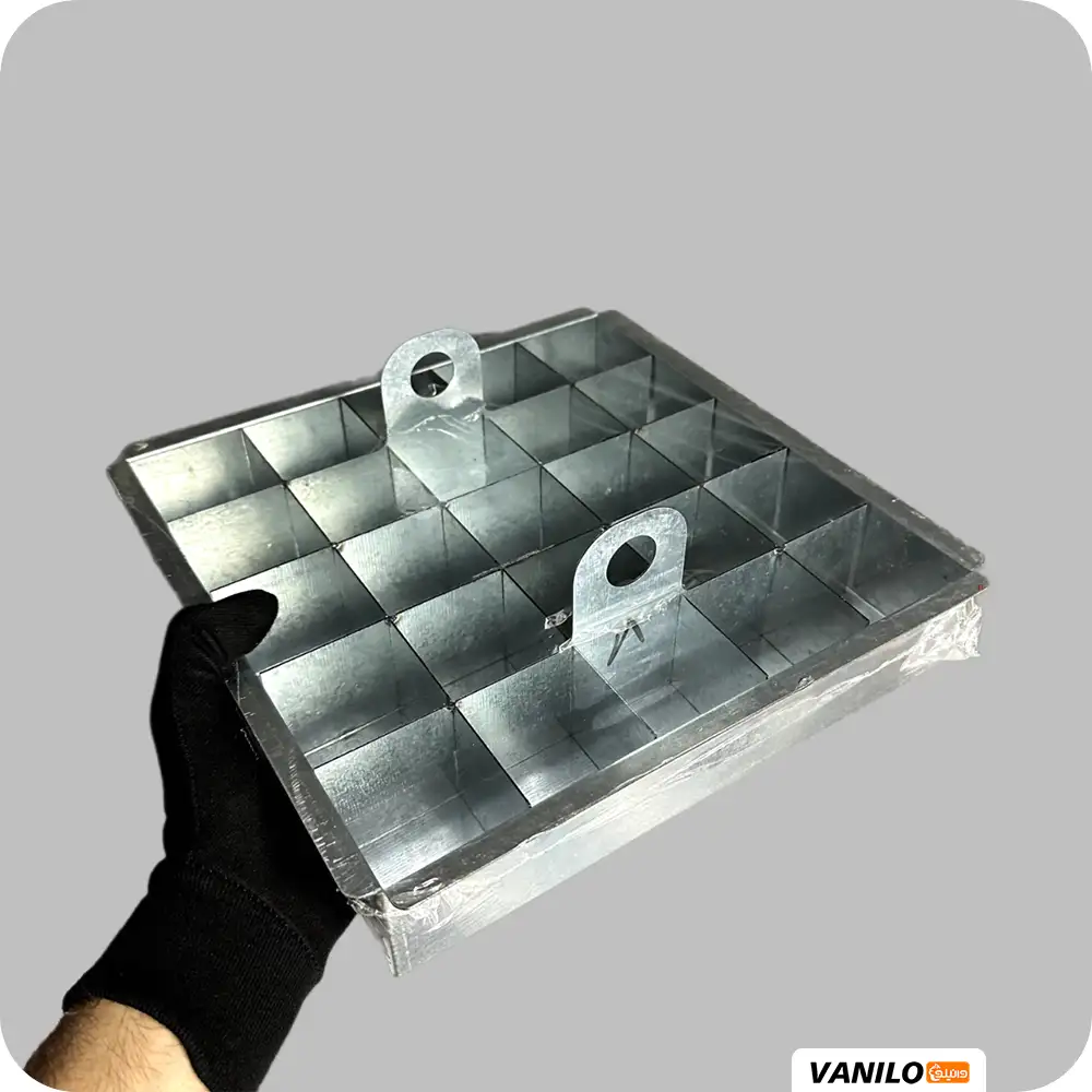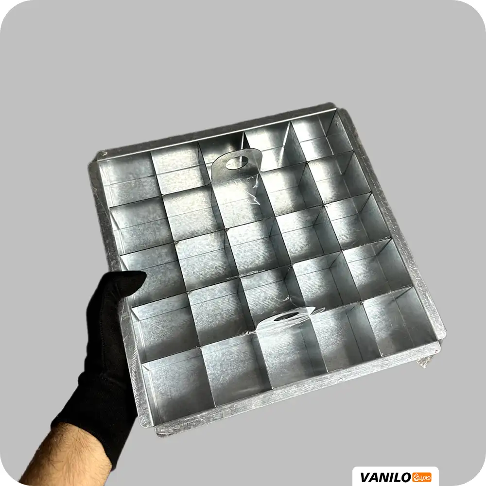 قالب اسلایسی گالوانیزه براونی، ابزاری تخصصی در شیرینیپزی است که برای پخت و برش یکنواخت کیک براونی به کار میرود. این قالب دو بخش اصلی دارد: