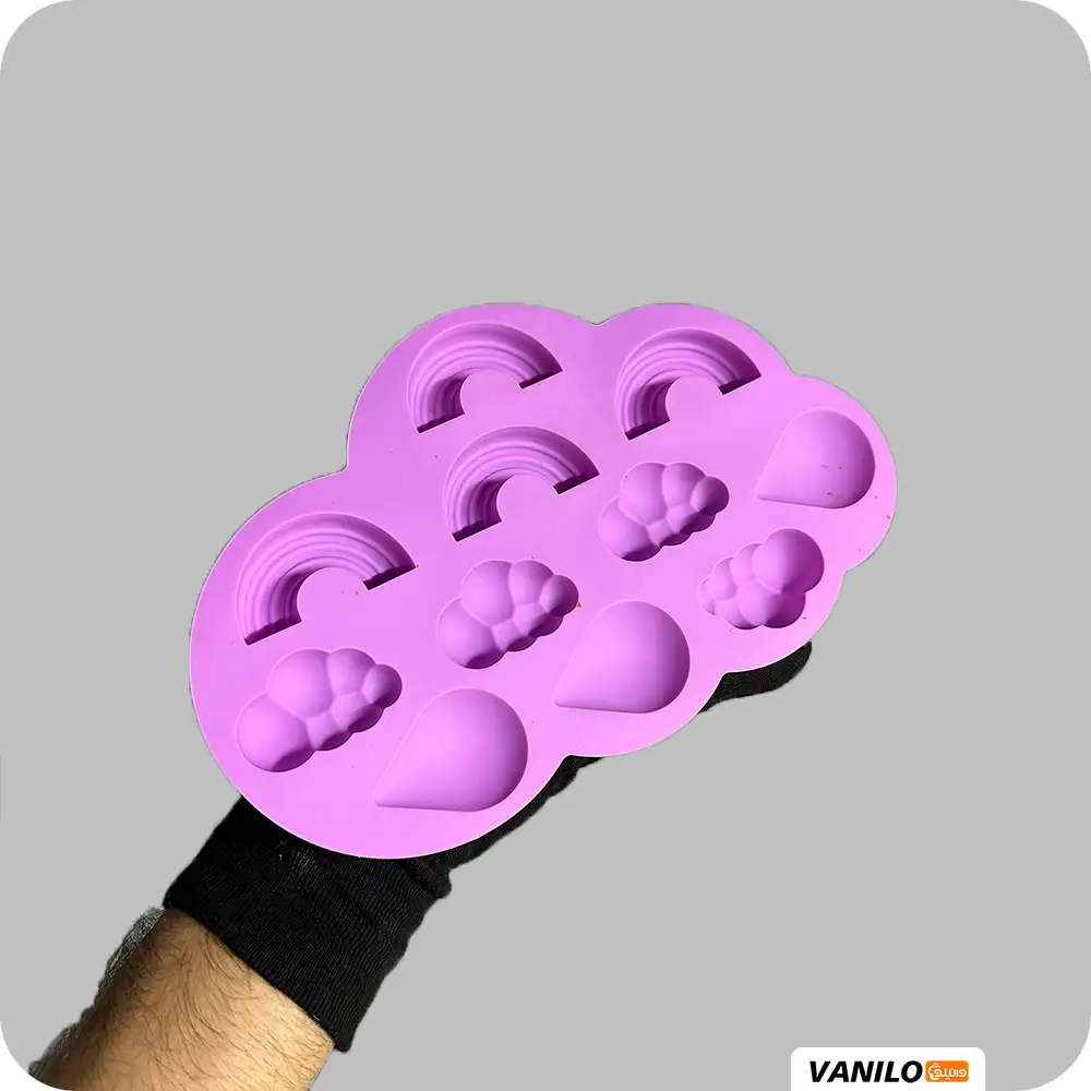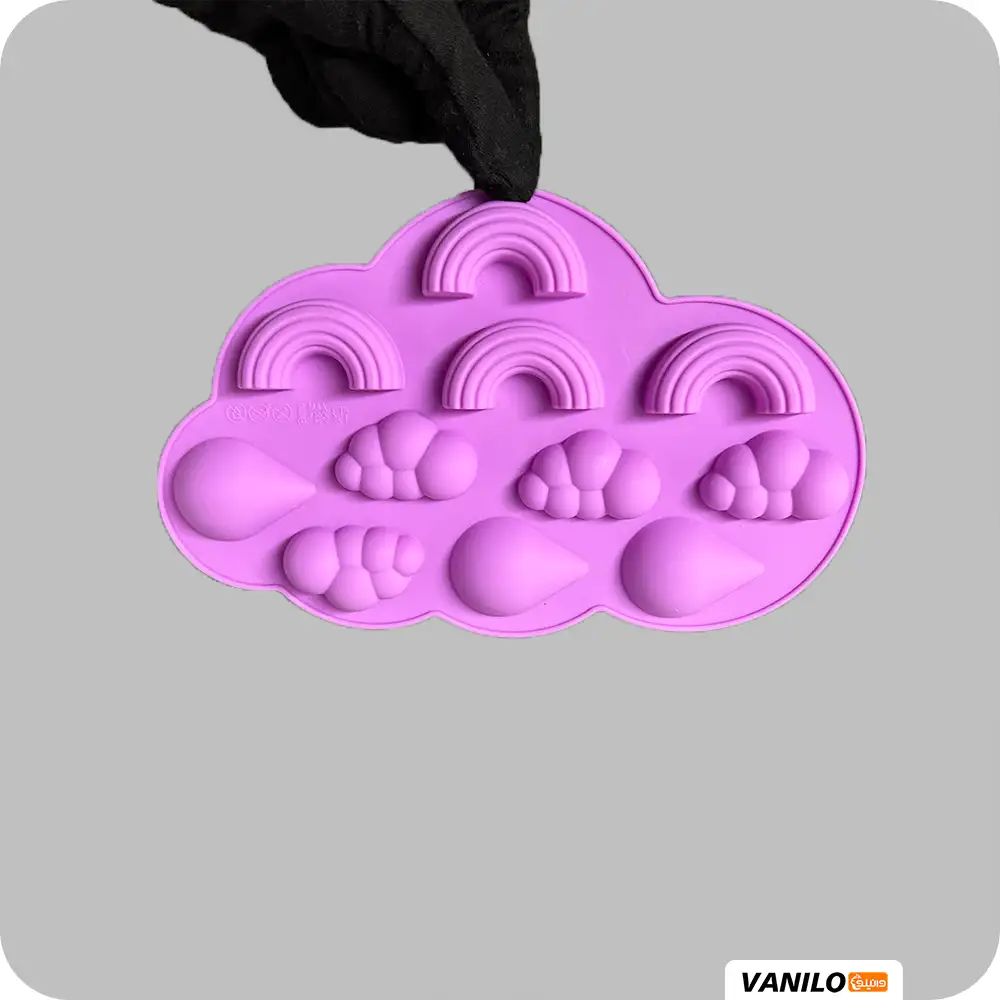قالب سیلیکونی رنگین کمان و ابر یک قالب فانتزی و پرطرفدار است که از سیلیکون نسوز، انعطافپذیر و فود گرید ساخته شده است. این قالب دارای حفرههایی با طرح رنگین کمان کامل در کنار طرحهای مختلف ابر (ساده و فانتزی) میباشد. این ابزار برای ساخت انواع تزئینات کیک و کاپکیک با تمهای کودکانه، آسمان، تولد استفاده میشود و برای قالبگیری شکلات، فوندانت، خمیر شکری، صابون و محصولات رزینی ایدهآل است.
