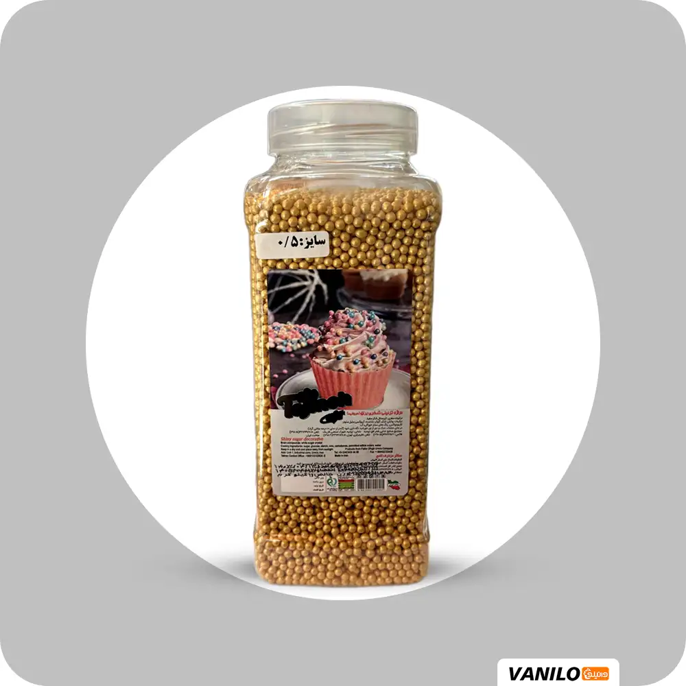 مروارید خوراکی طلایی با سایز ۰.۵ از برند تاژینه، محصولی ریز و درخشان است که برای تزیین انواع کیک، شیرینی، کاپکیک، دسر و بستنی استفاده میشود. این مرواریدهای کوچک و براق، به دلیل رنگ طلایی و جلوه لوکس خود، به محصولات قنادی و خانگی ظاهری بسیار شیک و مجلل میبخشند.