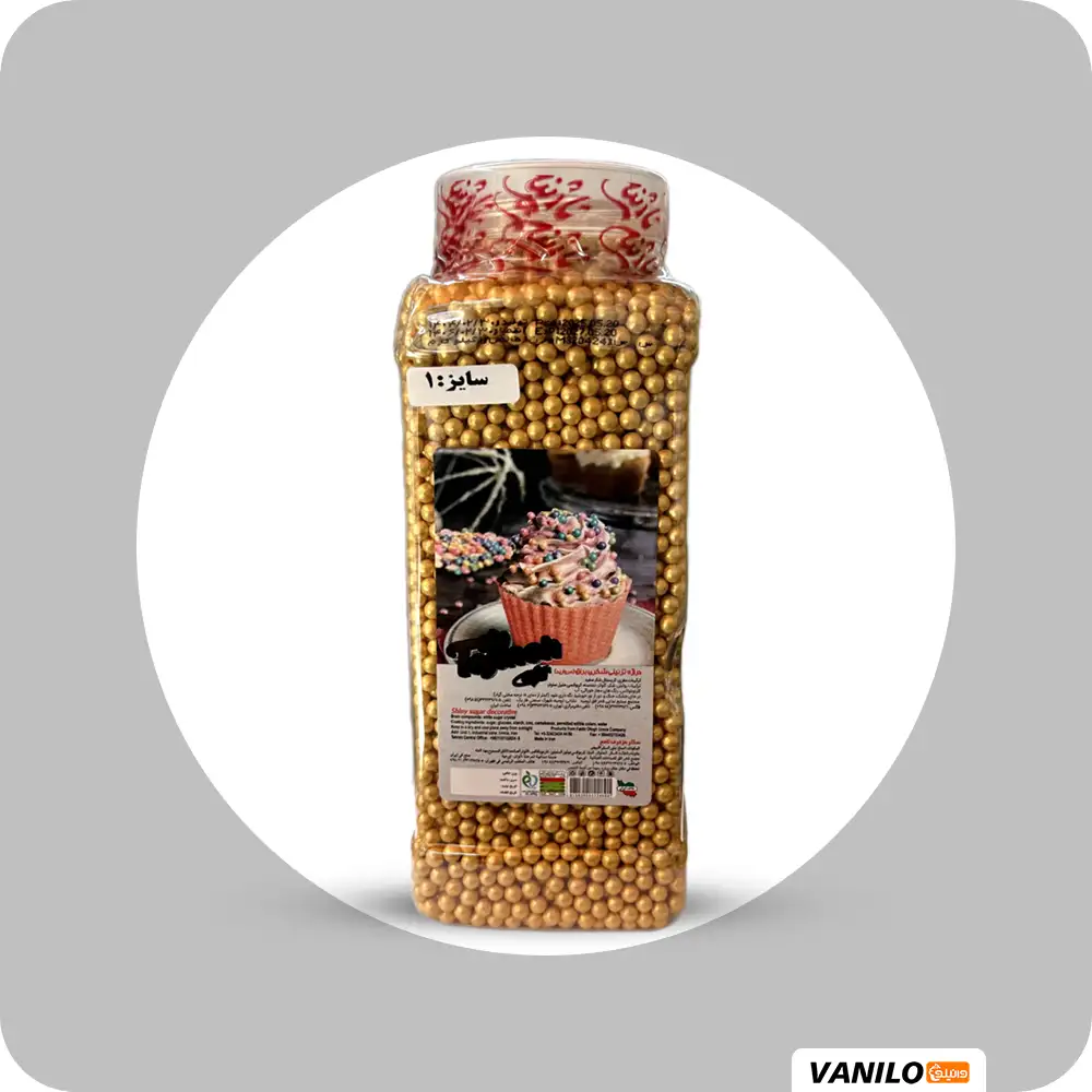 مروارید خوراکی طلایی با سایز ۱ از برند تاژینه، محصولی درخشان و زیبا است که برای تزیین انواع کیک، شیرینی، کاپکیک، دسر و بستنی استفاده میشود. این مرواریدها به دلیل رنگ طلایی و جلوه لوکس خود، به محصولات قنادی و خانگی ظاهری بسیار شیک و مجلل میبخشند.