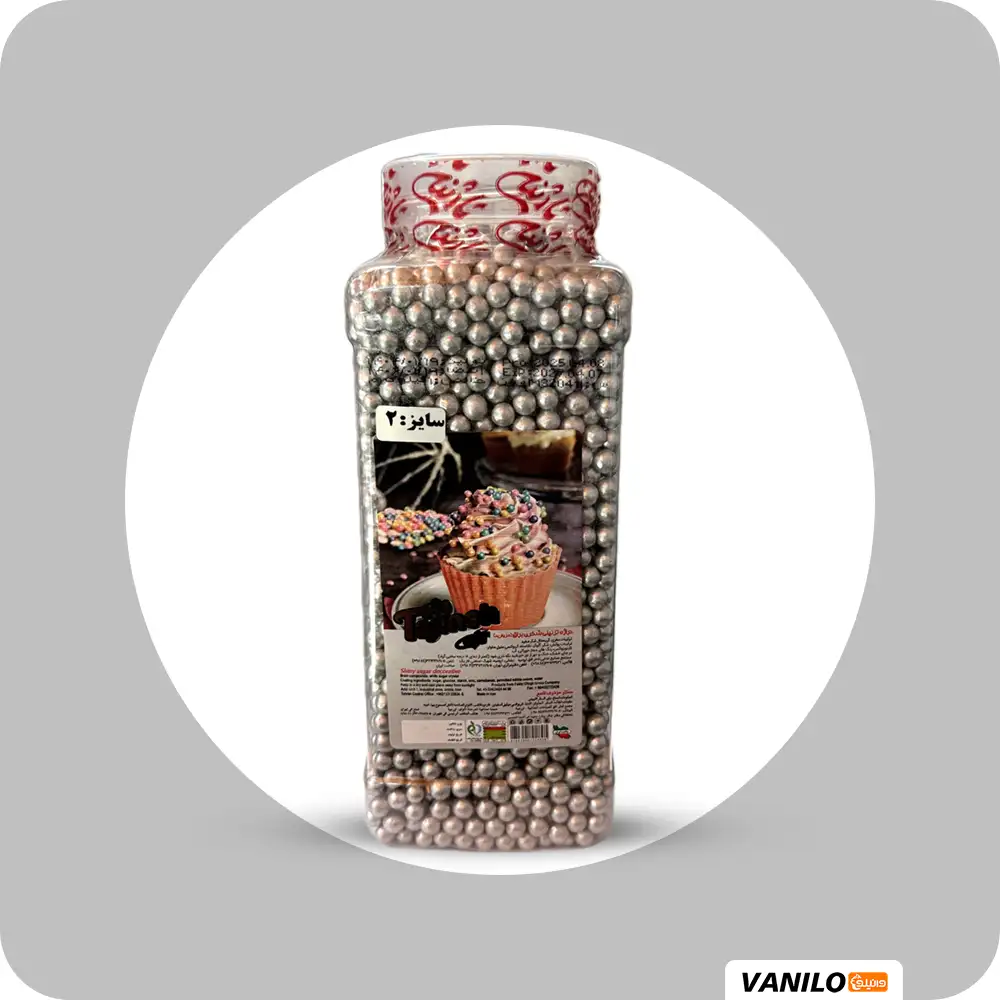 مروارید خوراکی نقرهای با سایز ۲ از برند تاژینه، محصولی درخشان و زیبا است که برای تزیین انواع کیک، شیرینی، کاپکیک، دسر و بستنی استفاده میشود. این مرواریدها به دلیل رنگ نقرهای و جلوه متالیک خود، به محصولات قنادی و خانگی ظاهری بسیار شیک و مدرن میبخشند.