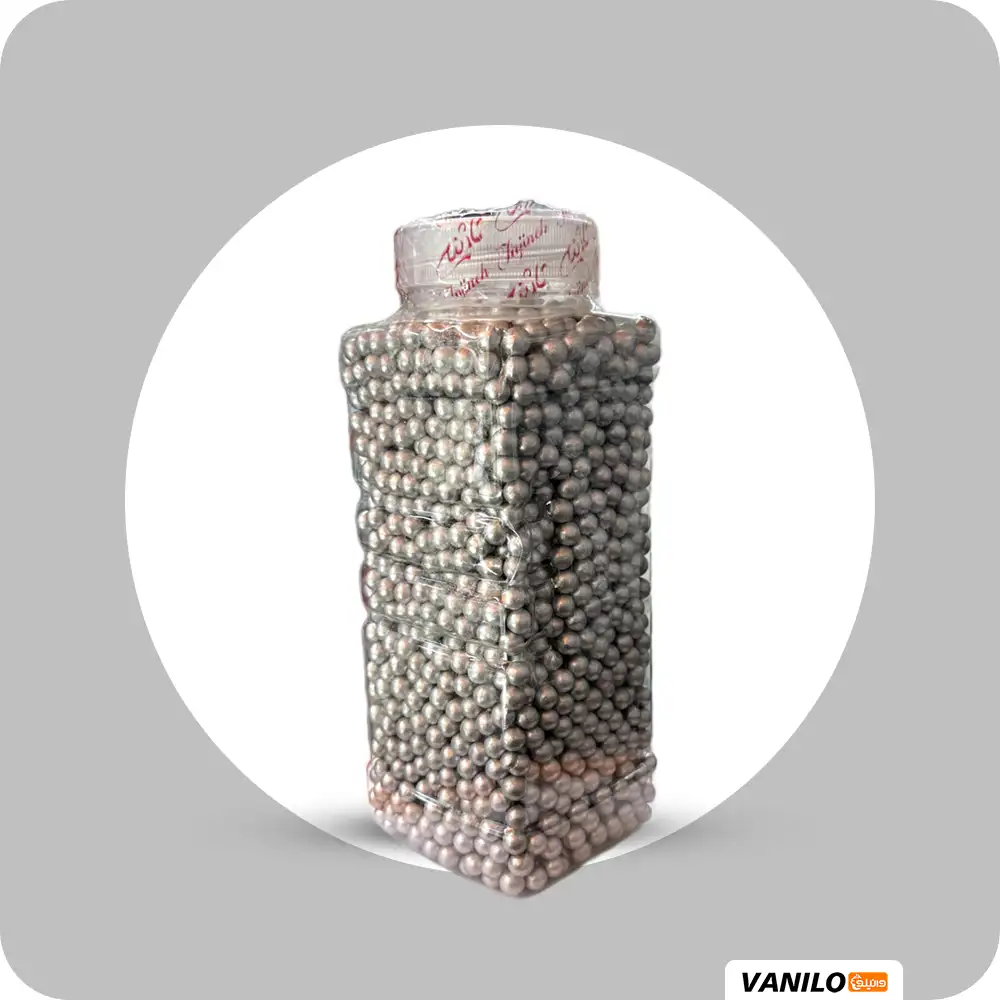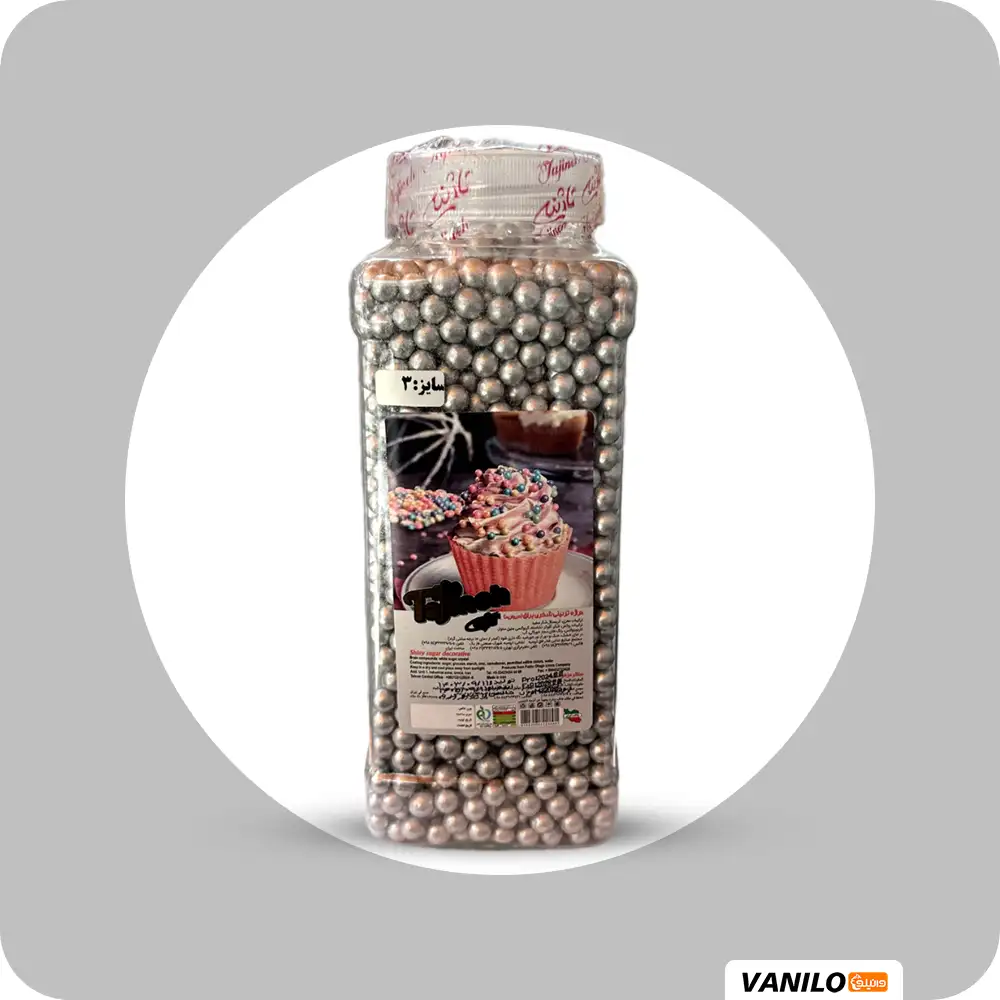 مروارید خوراکی نقرهای با سایز ۳ از برند تاژینه، محصولی درخشان و زیبا است که برای تزیین انواع کیک، شیرینی، کاپکیک، دسر و بستنی استفاده میشود. این مرواریدها به دلیل رنگ نقرهای و جلوه متالیک خود، به محصولات قنادی و خانگی ظاهری بسیار شیک و مدرن میبخشند.