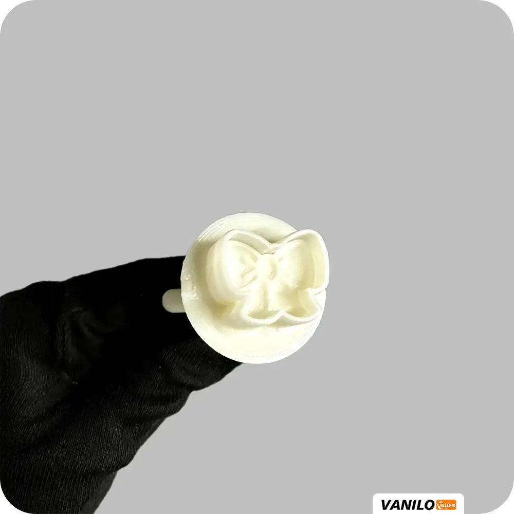 - نوع فشاری: این مهر به صورت فشاری عمل میکند. کافیست آن را روی سطح مورد نظر (مانند یک حبه قند نرم یا خمیر فوندانت) فشار دهید تا طرح پاپیون روی آن حک شود.